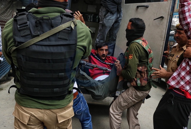 Protest strazakow w Kaszmirze_
