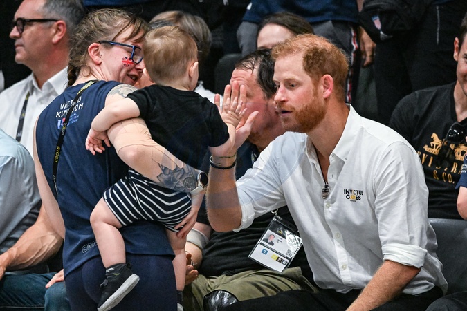 ksiaze Harry przybija piatke dziecku na meczu Invictus games