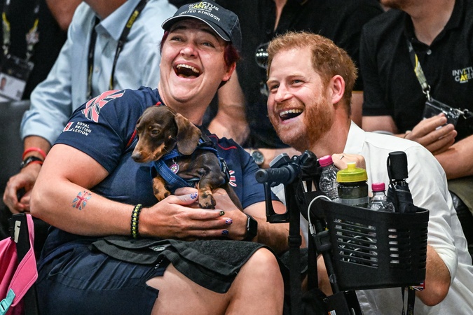 ksiaze Harry przybija piatke dziecku na meczu Invictus games