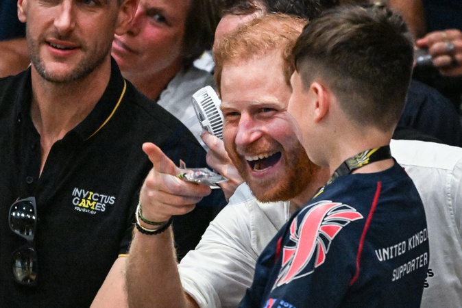 ksiaze Harry przybija piatke dziecku na meczu Invictus games