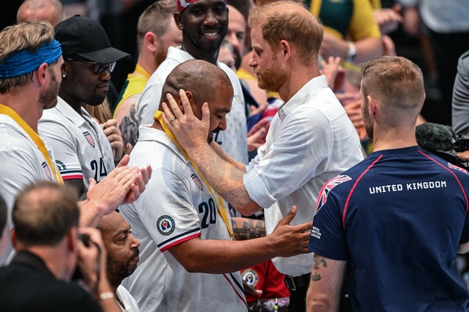 ksiaze Harry przybija piatke dziecku na meczu Invictus games