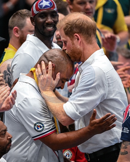ksiaze Harry przybija piatke dziecku na meczu Invictus games