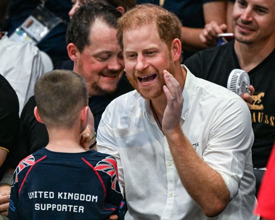 ksiaze Harry przybija piatke dziecku na meczu Invictus games