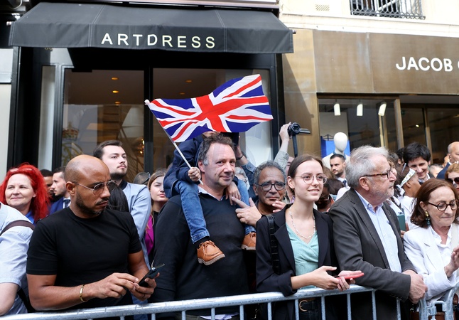 Macron Krol Karol III przed ambasada WB w Paryzu