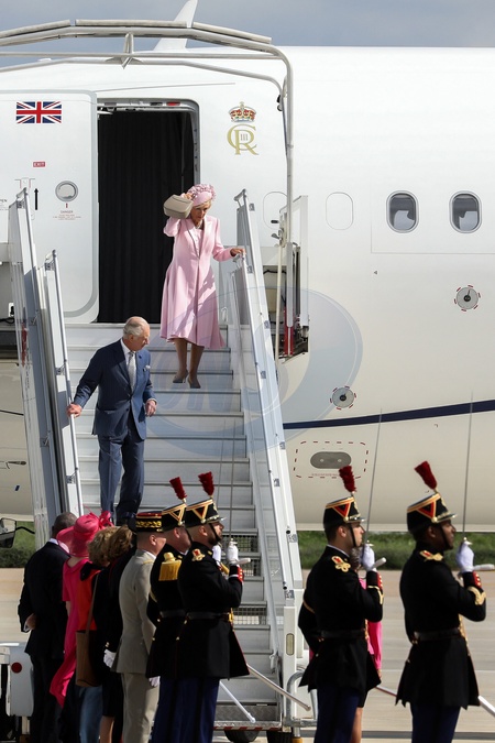 Krol Karol Camilla na lotnisku w Paryzu