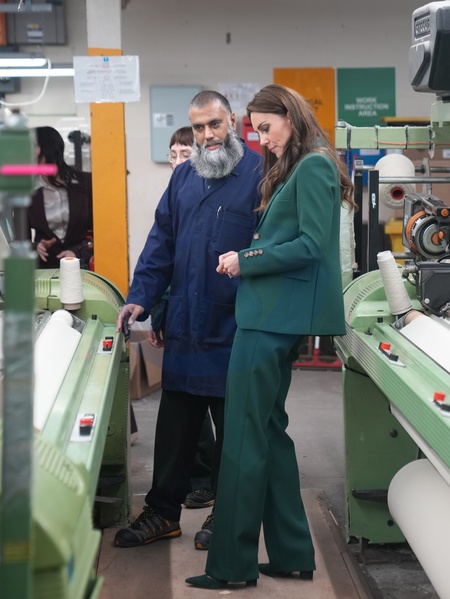 ksiezna Kate w fabryce tekstylnej w Leeds