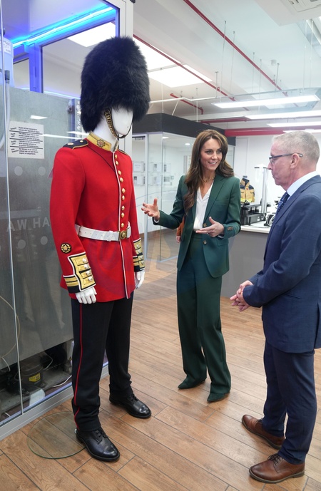 ksiezna Kate w fabryce tekstylnej w Leeds