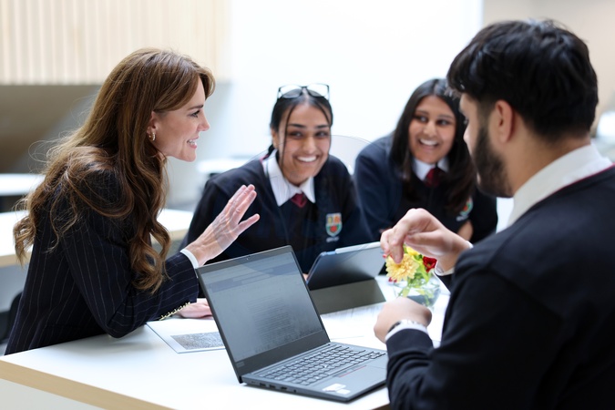 Ksiezna Kate ksiaze William z wizyta w szkole sredniej