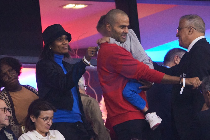 Tony Parker z rodzina na meczu rugby