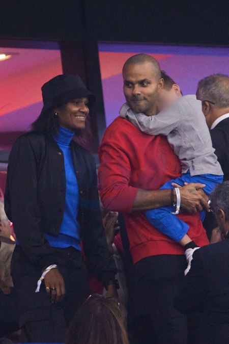 Tony Parker z rodzina na meczu rugby