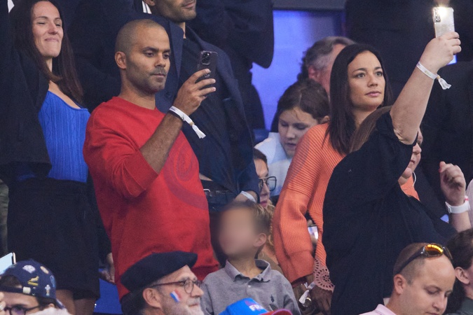 Tony Parker z rodzina na meczu rugby