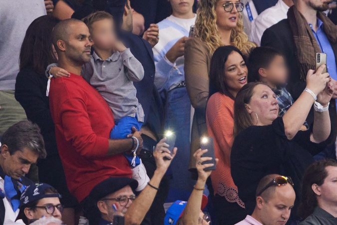 Tony Parker z rodzina na meczu rugby