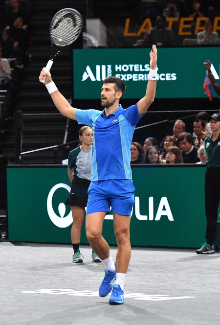 Novak Djokovic remporte la demi-finale de l'Open Rolex Paris Masters à l'Accor Arena contre Andrey Rublev