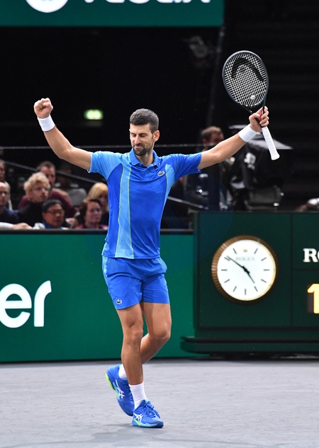 Novak Djokovic - TENNIS - Rolex Paris Bercy Masters 1000 - Novak Djokovic remporte la finale face à G.Dimitrov à Paris le 5 novembre 2023. Son septième titre à Bercy. © Veeren / Bestimage TENNIS - Rolex Paris Bercy Masters 1000 - Novak Djokovic wins the final against G.Dimitrov in Paris on November 5, 2023. His seventh title at Bercy.