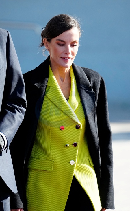 Le roi et la reine Letizia d'Espagne, au départ pour leur voyage officiel au Danemark de Madrid, Espagne, le 6 novembre 2023. La visite du couple royal espagnol, servira à mettre en valeur et à renforcer les liens bilatéraux et les relations entre les deux pays, du 6 au 8 novembre 2023. King of Spain, Queen Letizia of Spain attends departure to Denmark for 3 Days State Visit at Adolfo Suarez-Madrid Barajas Airport in Madrid, Spain.