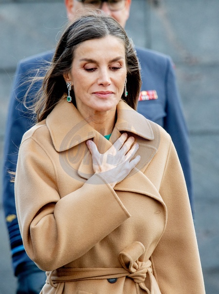 La reine Letizia d'Espagne - Le roi Felipe VI et la reine Letizia d'Espagne, Le prince Frederik et la princesse Mary de Danemark lors d'un dépôt de gerbes à la Citadelle à Copenhague, le 7 novembre 2023. State Visit of King Felipe and Queen Letizia of Spain to Denmark. Wreath laying, The Citadel by King Felipe and Queen Letizia of Spain acopannied by Crown Prince Frederik and Crown Princess Mary of Denmark. November 7th, 2023.