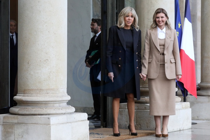 La Première Dame française Brigitte Macron reçoit son homologue la Première Dame ukrainienne Olena Zelenska pour un entretien au palais de l'Elysée à Paris, France, le 9 novembre 2023. © Stéphane Lemouton/Bestimage French First Lady Brigitte Macron receives Ukraine's First Lady Olena Zelenska, at the Elysee Presidential Palace, in Paris, on November 9, 2023.