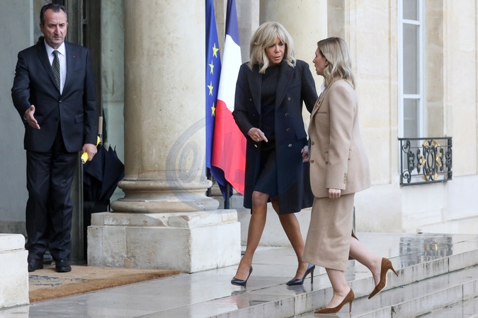 La Première Dame française Brigitte Macron reçoit son homologue la Première Dame ukrainienne Olena Zelenska pour un entretien au palais de l'Elysée à Paris, France, le 9 novembre 2023. © Stéphane Lemouton/Bestimage French First Lady Brigitte Macron receives Ukraine's First Lady Olena Zelenska, at the Elysee Presidential Palace, in Paris, on November 9, 2023.
