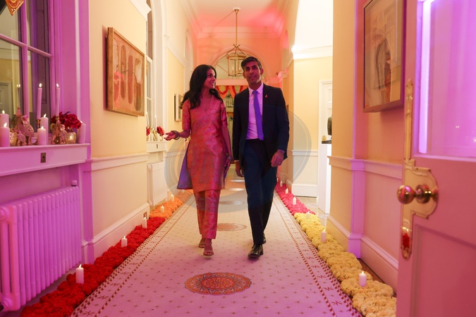 08/11/2023. London, United Kingdom. Prime Minister Rishi Sunak and his wife Akshata Murty host a reception to mark Diwali in 10 Downing Street., Credit:Simon Dawson / Avalon