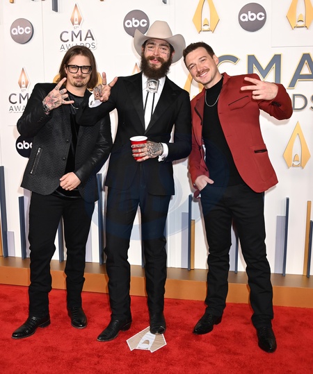 Hardy, Post Malone and Morgan Wallen arriving to the 57th Annual Country Music Association Awards held at the Bridgestone Arena on November 8, 2023 in Nashville, TN.© Arroyo-OConnor / AFF-USA.com