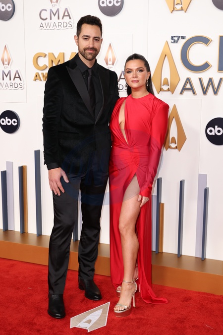 Paul DiGiovanni and Katie Stevens arriving at the 57th Annual Country Music Association Awards held at the Bridgestone Arena on November 8, 2023 in Nashville, TN.© Curtis Hilbun / AFF-USA.COM