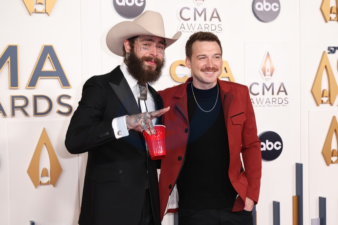 Post Malone and Morgan Wallen arriving at the 57th Annual Country Music Association Awards held at the Bridgestone Arena on November 8, 2023 in Nashville, TN.© Curtis Hilbun / AFF-USA.COM