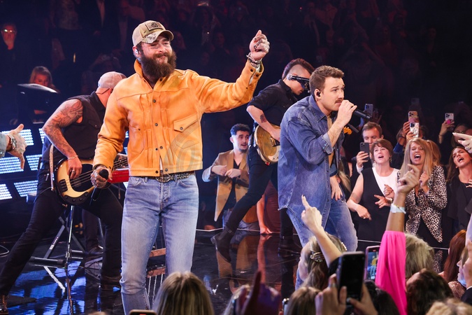 Post Malone and Morgan Wallen onstage at the 57th Annual Country Music Association Awards held at the Bridgestone Arena on November 8, 2023 in Nashville, TN.© Curtis Hilbun / AFF-USA.COM