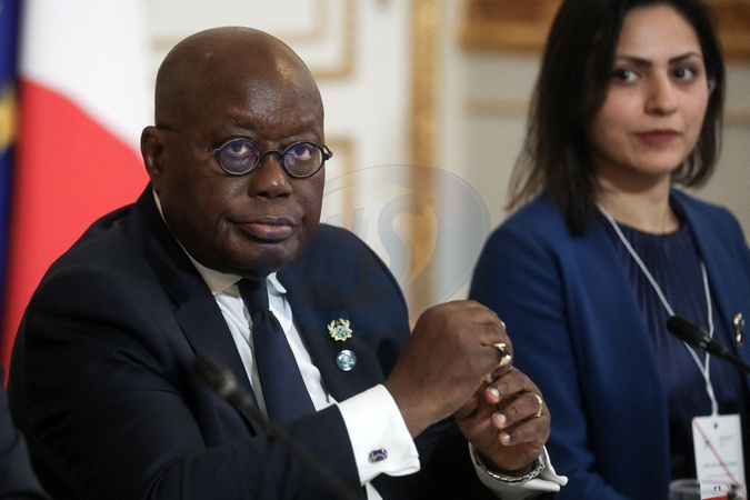 Le président du Ghana, Nana Akufo-Addo - Le président français lors d'une réunion du 5ème sommet de l'Appel de Christchurch, au palais de l'Elysée, Paris, France, le 10 novembre 2023, en marge du Forum de Paris sur la Paix. © Stéphane Lemouton/Bestimage French President during the 5th Summit of "Christchurch call", at the Elysee Presidential palace in Paris, FRance, on November 10, 2023, on the sidelines of The Paris Peace Forum.