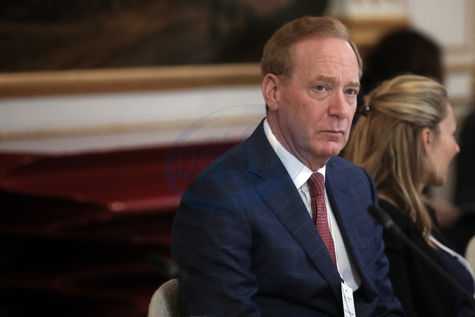 Brad Smith, président de Microsoft - Le président français lors d'une réunion du 5ème sommet de l'Appel de Christchurch, au palais de l'Elysée, Paris, France, le 10 novembre 2023, en marge du Forum de Paris sur la Paix. © Stéphane Lemouton/Bestimage French President during the 5th Summit of "Christchurch call", at the Elysee Presidential palace in Paris, FRance, on November 10, 2023, on the sidelines of The Paris Peace Forum.