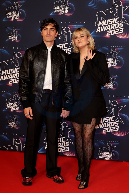 Florian Rossi et sa compagne Louane au photocall de la 25ème cérémonie des "NRJ Music Awards (NMA)" au palais des Festivals et des Congrès de Cannes, France, le 10 novembre 2023. © Dominique Jacovides/Bestimage Celebs attend the 25th NRJ Music Awards - Red Carpet arrivals at Palais des Festivals in Cannes, France, on November 10, 2023.