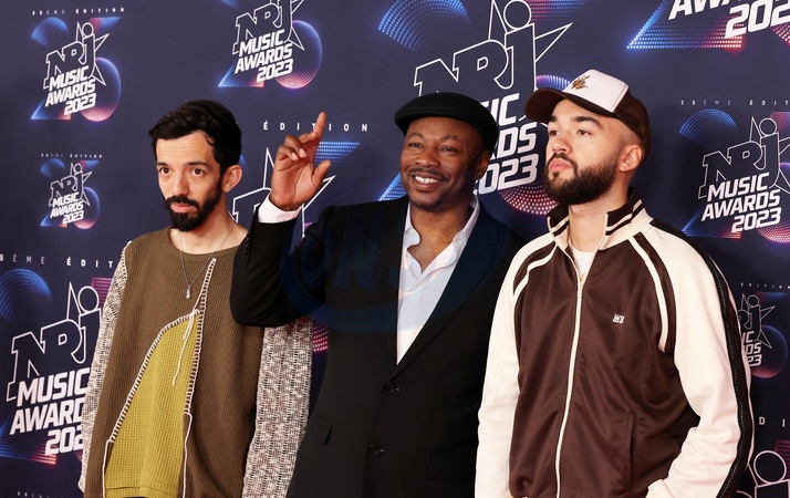 MC Solaar (Claude MC, Claude M'Baral) entre Bigflo et Oli (Florian et Olivio Ordoñez) au photocall de la 25ème cérémonie des "NRJ Music Awards (NMA)" au palais des Festivals et des Congrès de Cannes, France, le 10 novembre 2023. © Dominique Jacovides/Bestimage Celebs attend the 25th NRJ Music Awards - Red Carpet arrivals at Palais des Festivals in Cannes, France, on November 10, 2023.