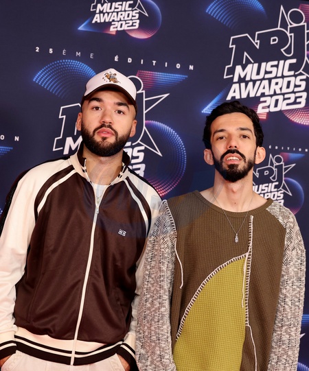 Bigflo et Oli (Florian et Olivio Ordoñez) au photocall de la 25ème cérémonie des "NRJ Music Awards (NMA)" au palais des Festivals et des Congrès de Cannes, France, le 10 novembre 2023. © Dominique Jacovides/Bestimage Celebs attend the 25th NRJ Music Awards - Red Carpet arrivals at Palais des Festivals in Cannes, France, on November 10, 2023.