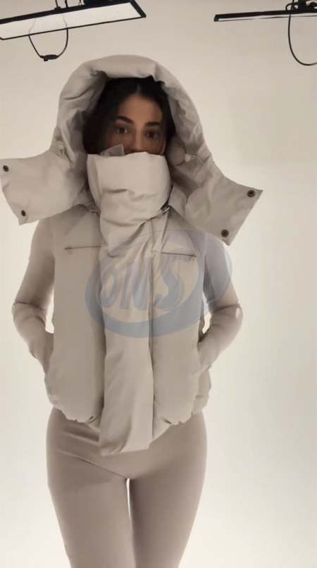 Screenshot of Kylie Jenner, latest post on social media, 9th November 2023.Quote:"khy drop 002. puffers + base layers coming 11/15 in stone, black, and cobalt blue. @khy", Credit:B4859 / Avalon