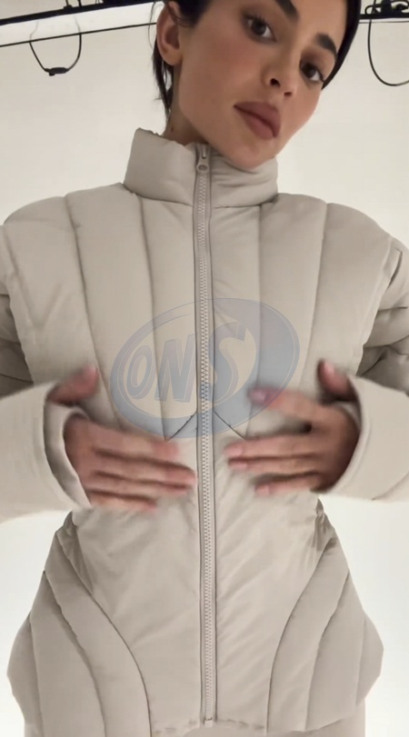 Screenshot of Kylie Jenner, latest post on social media, 9th November 2023.Quote:"khy drop 002. puffers + base layers coming 11/15 in stone, black, and cobalt blue. @khy", Credit:B4859 / Avalon