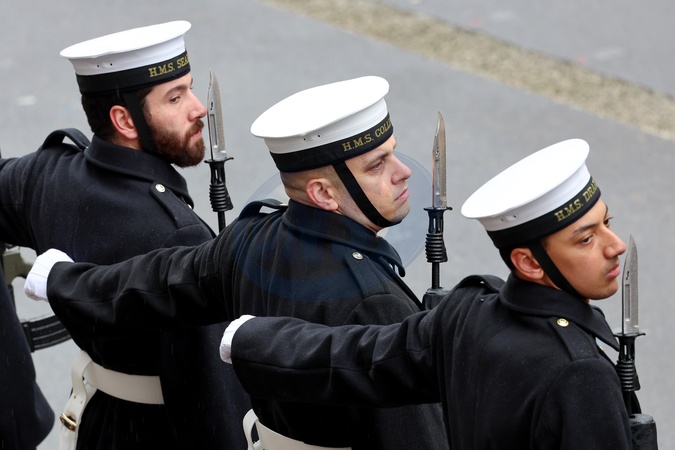 LONDON, ENGLAND - NOVEMBER 12: Royal Navy personnel during the National Service of Remembrance at The Cenotaph on November 12, 2023 in London, England. Every year, members of the British Royal family join politicians, veterans and members of the public to remember those who have died in combat., Credit:Chris Jackson / Avalon