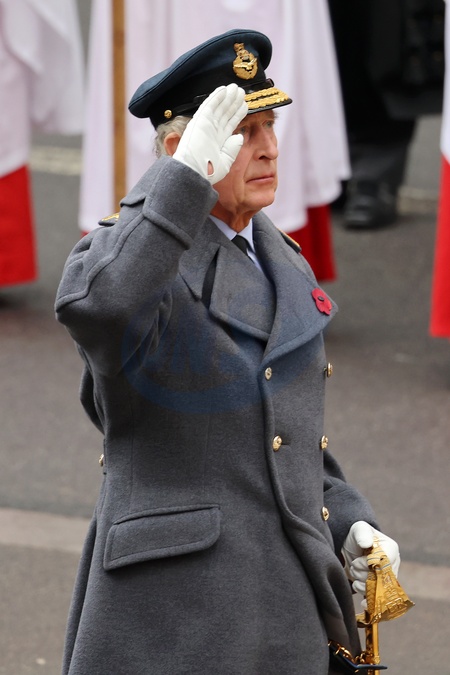 LONDON, ENGLAND - NOVEMBER 12: King Charles III during the National Service of Remembrance at The Cenotaph on November 12, 2023 in London, England. Every year, members of the British Royal family join politicians, veterans and members of the public to remember those who have died in combat., Credit:Chris Jackson / Avalon