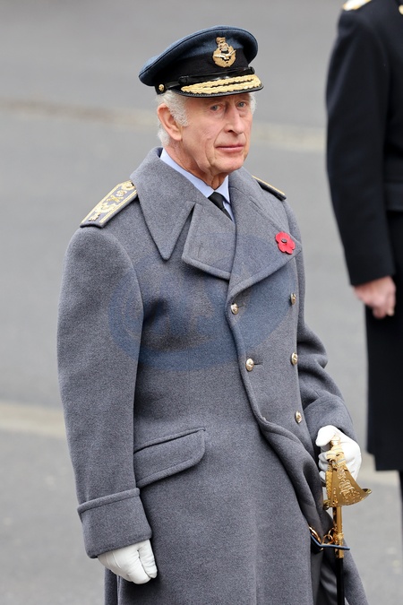 LONDON, ENGLAND - NOVEMBER 12: King Charles III during the National Service of Remembrance at The Cenotaph on November 12, 2023 in London, England. Every year, members of the British Royal family join politicians, veterans and members of the public to remember those who have died in combat., Credit:Chris Jackson / Avalon