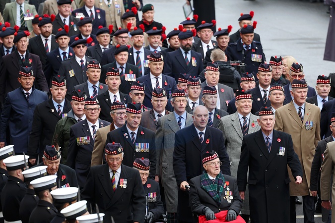 LONDON, ENGLAND - NOVEMBER 12: General view of the veteran parade during the National Service of Remembrance at The Cenotaph on November 12, 2023 in London, England. Every year, members of the British Royal family join politicians, veterans and members of the public to remember those who have died in combat., Credit:Chris Jackson / Avalon