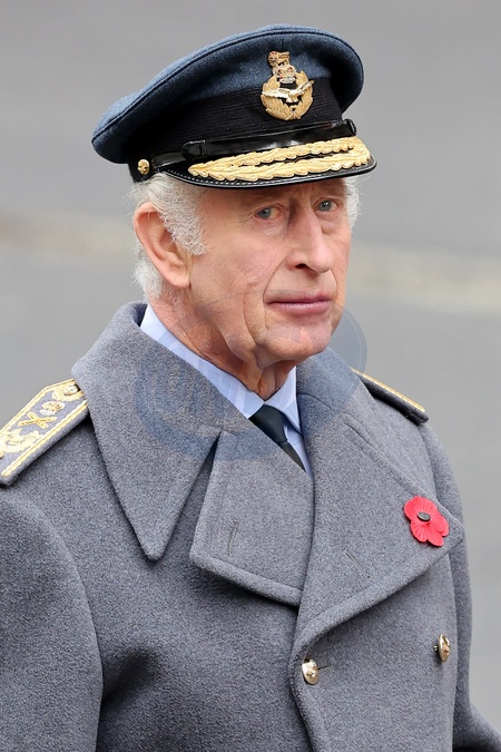 LONDON, ENGLAND - NOVEMBER 12: King Charles III during the National Service of Remembrance at The Cenotaph on November 12, 2023 in London, England. Every year, members of the British Royal family join politicians, veterans and members of the public to remember those who have died in combat., Credit:Chris Jackson / Avalon
