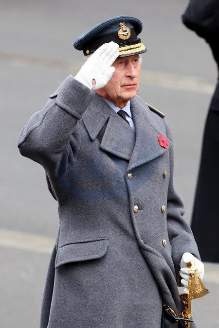 LONDON, ENGLAND - NOVEMBER 12: King Charles III during the National Service of Remembrance at The Cenotaph on November 12, 2023 in London, England. Every year, members of the British Royal family join politicians, veterans and members of the public to remember those who have died in combat., Credit:Chris Jackson / Avalon