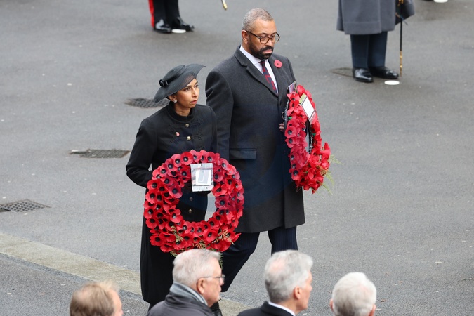 LONDON, ENGLAND - NOVEMBER 12: Suella Braverman MP and James Cleverly MP during the National Service of Remembrance at The Cenotaph on November 12, 2023 in London, England. Every year, members of the British Royal family join politicians, veterans and members of the public to remember those who have died in combat., Credit:Chris Jackson / Avalon