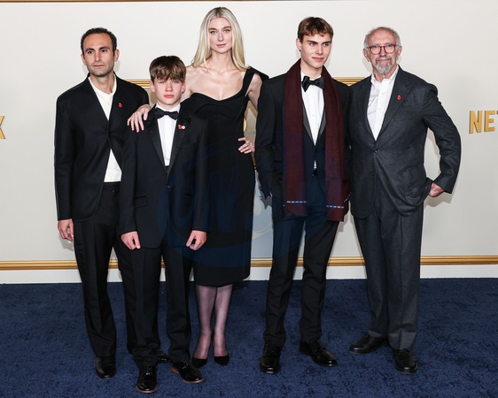 WESTWOOD, LOS ANGELES, CALIFORNIA, USA - NOVEMBER 12: Khalid Abdalla, Fflyn Edwards, Elizabeth Debicki, Rufus Kampa and Jonathan Pryce arrive at the Los Angeles Premiere Of Netflix's 'The Crown' Season 6 Part 1 held at the Regency Village Theatre on November 12, 2023 in Westwood, Los Angeles, California, United States., Credit:Xavier Collin / Avalon