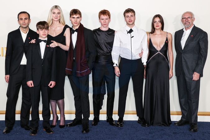 WESTWOOD, LOS ANGELES, CALIFORNIA, USA - NOVEMBER 12: Khalid Abdalla, Fflyn Edwards, Elizabeth Debicki, Rufus Kampa, Luther Ford, Ed McVey, Meg Bellamy and Jonathan Pryce arrive at the Los Angeles Premiere Of Netflix's 'The Crown' Season 6 Part 1 held at the Regency Village Theatre on November 12, 2023 in Westwood, Los Angeles, California, United States., Credit:Xavier Collin / Avalon