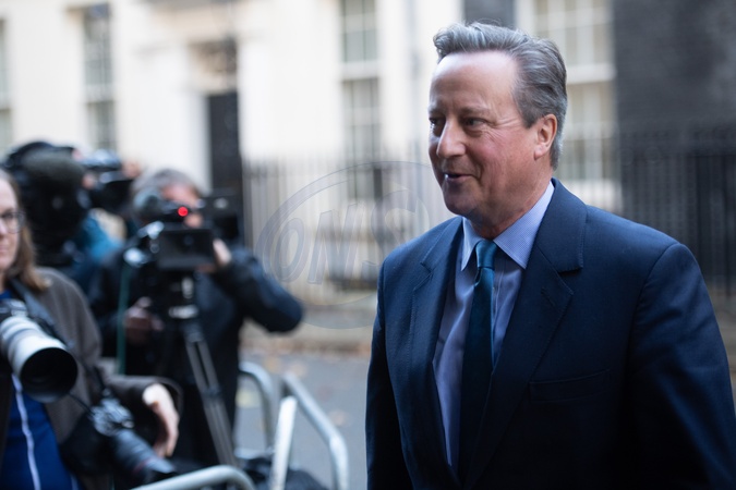 Former Prime Minister David Cameron and now newly appointed Secretary of State for Foreign , Commonwealth and Developmental Affairs departs with Sir Philip Barton - Permanent Under-Secretary at the Foreign, Commonwealth & Development Office at Downing Street in London, England, UK on Monday 13 November, 2023 as part of a cabinet reshuffle., Credit:Justin Ng / Avalon