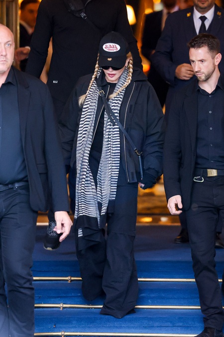 Madonna otoczona przez ochroniarzy przed hotelem Ritz w Paryzu