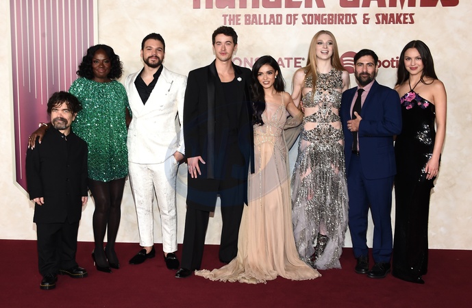 Peter Dinklage, Viola Davis, Josh Andres Rivera, Tom Blyth, Rachel Zegler, Hunter Schafer, Jason Schwartzman and Olivia Rodrigo arriving to the "The Hunger Games: The Ballad of Songbirds & Snakes” Premiere held at the TCL Chinese Theatre on November 13, 2023 in Hollywood, Ca.© Lisa OConnor/AFF-USA.com