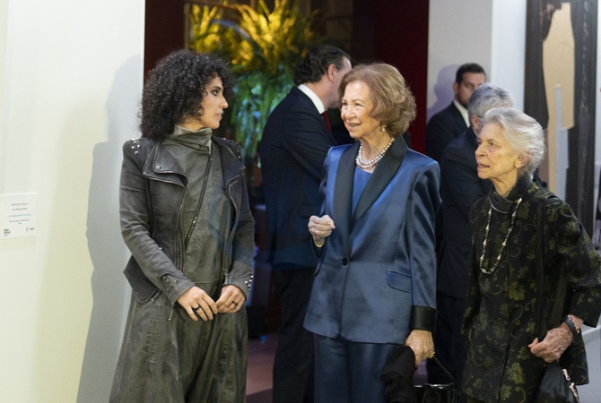 La reine Sofia d'Espagne et sa soeur la princesse Irene de Grèce lors des "BMW Paintings Awards" à Madrid