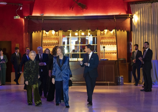 La reine Sofia d'Espagne et sa soeur la princesse Irene de Grèce lors des "BMW Paintings Awards" à Madrid. le 13 novembre 2023 Emerit Queen Sofia,and her sister Princess Irene of Greece attend the BMW Painting Awards at the Royal Theatre. Madrid - November 13, 2023