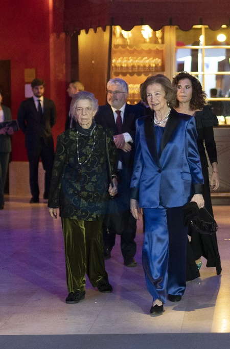 La reine Sofia d'Espagne et sa soeur la princesse Irene de Grèce lors des "BMW Paintings Awards" à Madrid. le 13 novembre 2023 Emerit Queen Sofia,and her sister Princess Irene of Greece attend the BMW Painting Awards at the Royal Theatre. Madrid - November 13, 2023