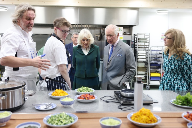 Krol Karol III i krolowa Camilla w magazynach Fare Share Didcot